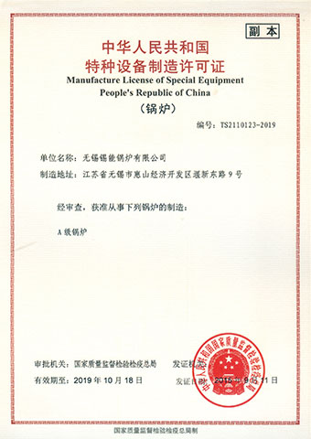 A級鍋爐制造許可證