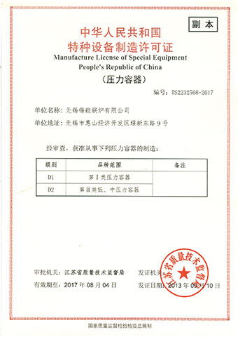 D1D2級壓力容器制造許可證